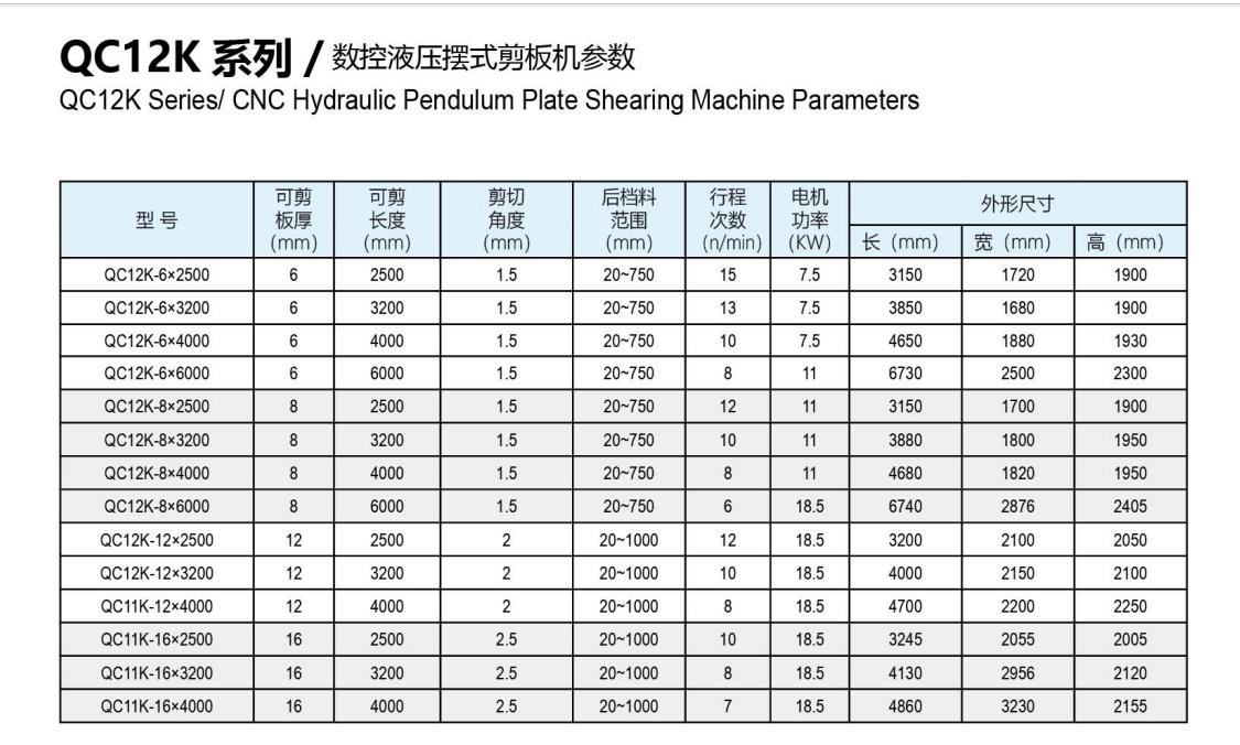 | ● The lower end of the press cylinder is equipped with a special material gasket to avoid leaving marks on aluminum alloy or other sensitive materials ● Pressure of hold down cylinders changes with the thickness of the cut sheet material. *High quality alloy tool steel material 6CrW2SI (standard shear blades) is used to cut ordinary carbon steel ● Optional material is Cr12MoV shear blades, for cut stainless steel plate● The upper blade is a parallelogram, and the lower blade is a rectangular segment blade |