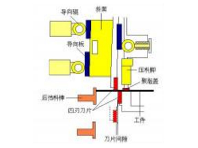| Three-point roller guide tool frame structure Adopt three-point roller guide tool holder structure, the front prepress guide rail to make the tool holder Always stick to the upper guide rail and the lower guide rail for no gap reciprocating action, when cutting different plates, the blade clearance can be adjusted, so that the cutting quality is better. |