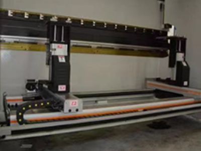 Y1 ~ Y2 axis Y1 ~ Y2 axes are two independent moving axes of cylinders controlled by CNC system. Two linear scales Y1 ~ Y2 are installed at both ends of the machine, which are used to determine the exact distance between the slider and the table. The linear scale is connected with the table to eliminate the influence of the column deformation on the position of the slider. When the slider is running, the position data is immediately fed back to the numerical control system, which can calculate and output the servo valve control signal S1 ~ S2, control the output flow of the two electro-hydraulic servo valves, and synchronize the two cylinders. |